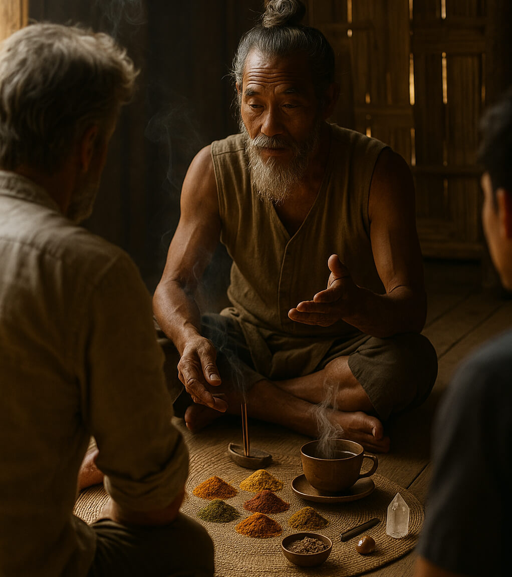 O Chamã então pediu que ele se sentasse. Explicou, em poucas palavras, que estava diante de uma prática ancestral restrita a poucos herbalistas tailandeses. Um ritual protegido por leis culturais e proibido de ser comercializado fora do país. Deixou claro que estava confiando em seu guia que é um dos membros da Tribo para ajudar Juan.